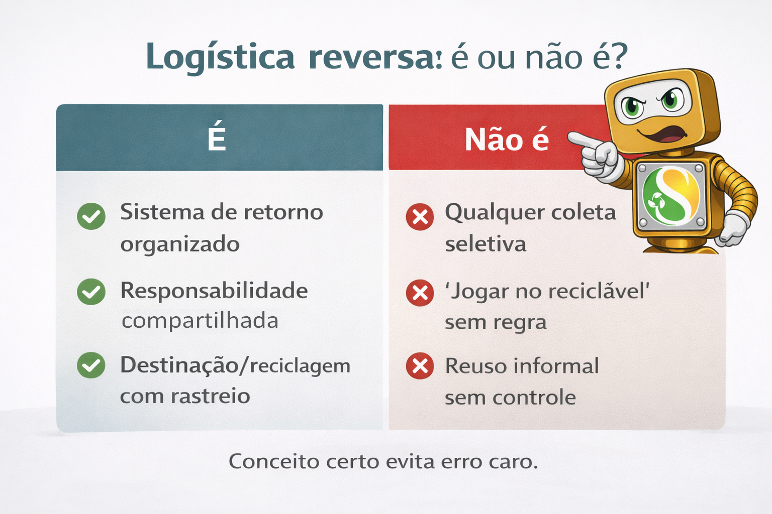· Logística reversa é retorno organizado (não “lixo reciclável” genérico).