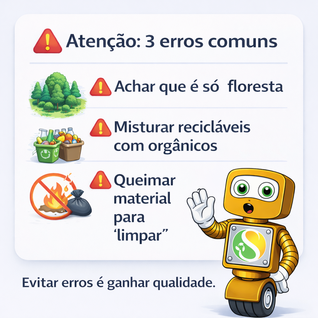 Isso ajuda a entender por que “lixo na calçada”, “fumaça”, “barulho”, “poeira” e “enchentes” são discussões ambientais, mesmo sem ter floresta no meio.