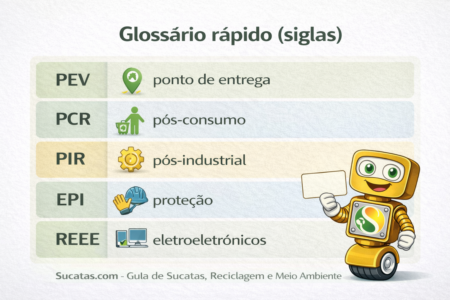 · Sucata é termo comercial (muito usado para metal). Reciclável é mais amplo. O que define é: existe comprador e viabilidade de reprocessamento para aquele material, naquela condição.